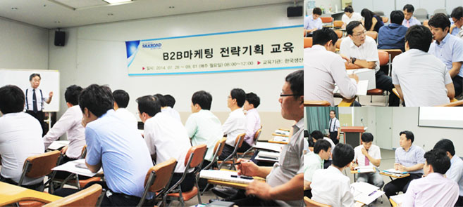 실크로드시앤티는 한국생산성본부와 협업하여 영업사원들의 직무역량 강화를 위한 기업 맞춤형 B2B 마케팅 전략기획 교육 과정을 개발하였다. 2014년 7월 28일부터 6주간 6회에 걸쳐 진행될 이번 교육은 B2B 마케팅 이론, 프로세스, 전략수립, 성공사례, 워크숍 등 영업 실무에 적용할 수 있는 커리큘럼으로 구성되어 있다. 영업사원들은 일반 공개교육 보다 교육 효과가 높을 것으로 기대하고 있으며, 교육에도 적극적으로 임하고 있다.