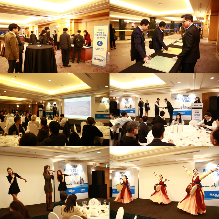1부에서는 고품질 산업용 바닥재인 UCRETE 제품 설명을 포함한 기술 세미나가 진행됐으며, 2부에서는 실크로드가 후원하고 있는 한국 전통 무용단인 윤명화 무용단과 트로트계의 요정이라 불리는 홍진영의 디너쇼가 진행됐다.