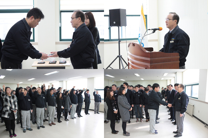 이날 시무식에서는 10년 이상 근속해 회사 발전에 이바지한 장기 근속 임직원에게 표창해 공로를 축하하는 의미 있는 시간을 가졌다. 또한 2017년 경영 목표, 경영 방침 및 주요 추진 과제 선포식을 진행했다.