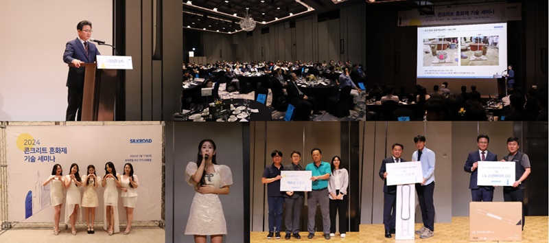 품질 이슈'에 대한 이한승 한국건축시공학회장의 강연에 큰 관심을 보였다. 이어서 실크로드시앤티의 신제품인 '단위수량 저감 혼화제 UHP'를 실크로드시앤티 주영길 기술연구소장이 소개하며 콘크리트 품질 문제에 해답을 제시했다. 이 외에도 조강 혼화제, 숏크리트용 급결제에 대해 발표하는 등 1부 기술 세미나를 통해 실크로드시앤티, 실크로드티앤디의 기술력을 소개하고