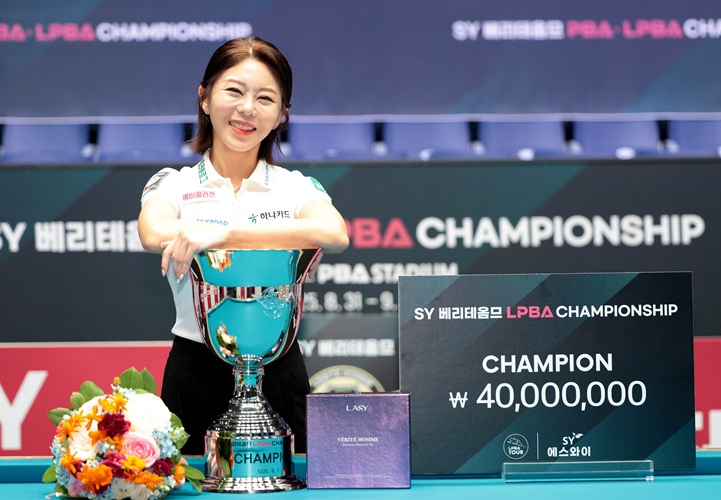 LPBA 통산 16번째 우승을 차지했다. 김가영은 7일 경기도 고양 킨텍스 PBA 스타디움에서 열린 SY 베리테옴므 챔피언십 결승에서 세트스코어 4대2로 승리하며 올 시즌 두 번째 정상에 올랐다.