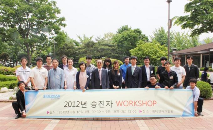 지난 5월 18일, 1박 2일의 일정으로 롯데인재개발원에서 승진자 워크숍이 진행되었다. 승진자 19명이 참석한 이번 워크숍에서는 리더십과 소통을 주제로 한 특강과 직무역량 향상 및 직원간의 유대 강화를 통한 업무 효율성을 늘리는데 필요한 다양한 프로그램이 실시되었다.