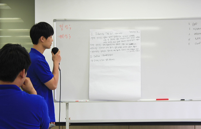 다섯 번째 강의로는 「팀워크 강화 훈련」으로 팀 프로젝트를 진행하며 경영전략과 팀워크의 본질을 배우는 시간을 가졌다.