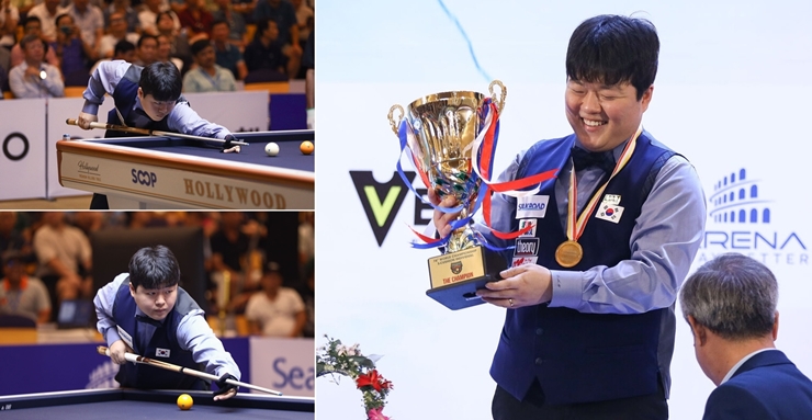 ‘제76회 세계 3쿠션 선수권 대회’ 결승전은 지난 29일 베트남 빈투안에서 진행됐다. 조명우는 결승전에서 베트남의 쩐 탄 룩(세계 랭킹 21위)을 50-23으로 제압하며 우승 트로피를 거머쥐었다. 2014년 최성원이 서울 세계 선수권에서 우승한 이후 10년 만에 한국에서 획득한 우승 타이틀이다. 이번 대회로 세계 선수권에 4번째 출전한 조명우는 지난해 동메달에 이어 역대 최초로 2년 연속 입상대에 올랐다.