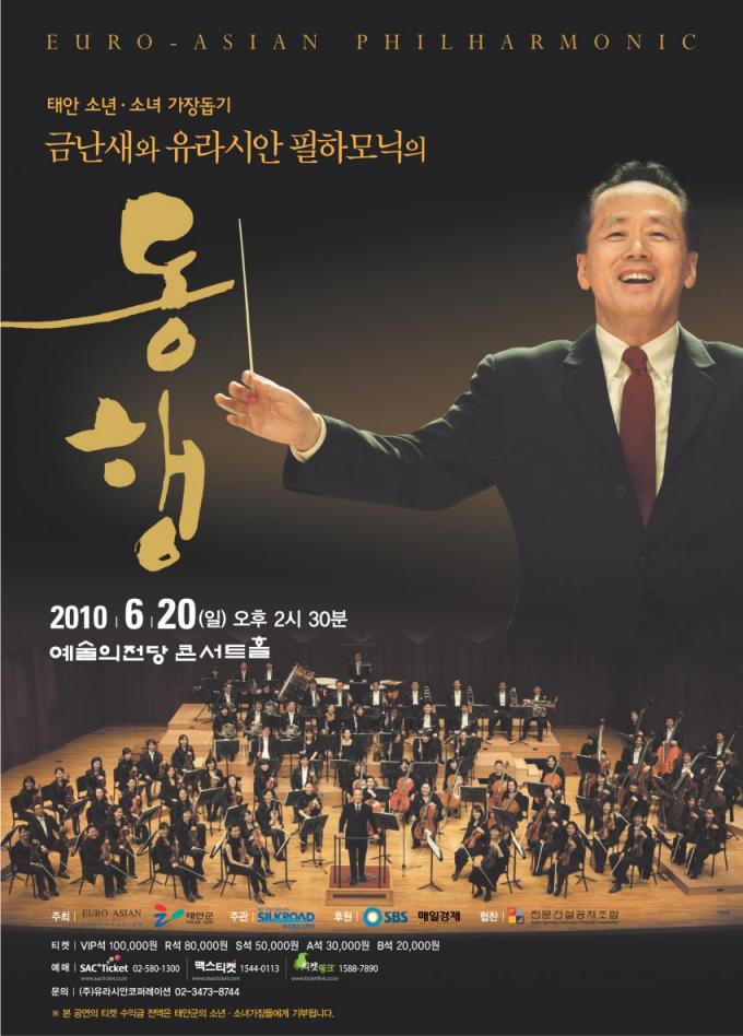 지난 2008년 <태안소년소녀가장돕기 신춘음악회 동행>의 성원에 힘입어, 실크로드시앤티의 주관으로 2010년 6월 20일 세계적인 지휘자 금난새와 유라시안필하모닉과 함께 음악회를 개최합니다. 이번 공연의 수익금 전액은 2007년 기름유출사고로 아직까지 이중고를 겪고 있는 태안 소년소녀가장에게 기부되오니, 많은 관심과 사랑 부탁드립니다.